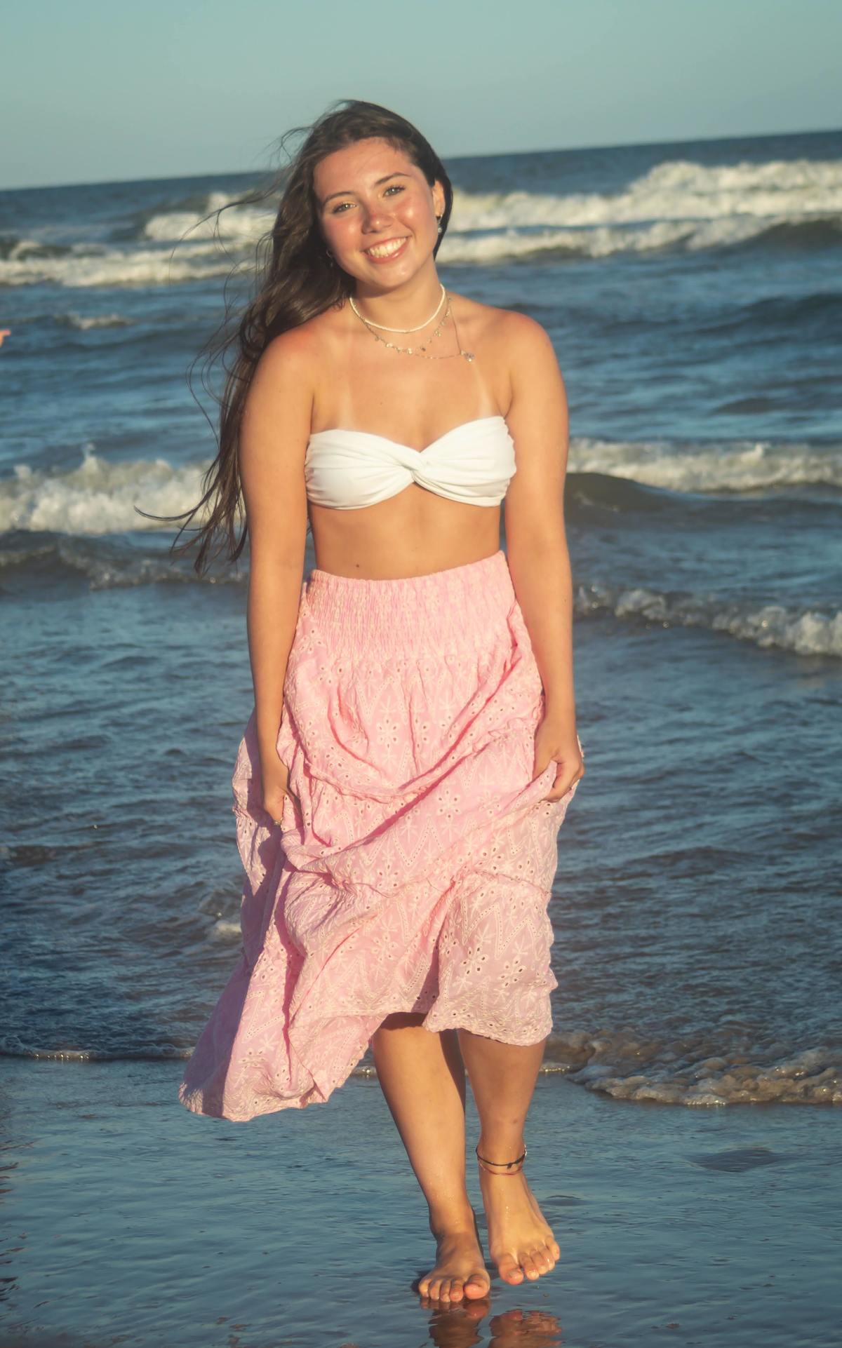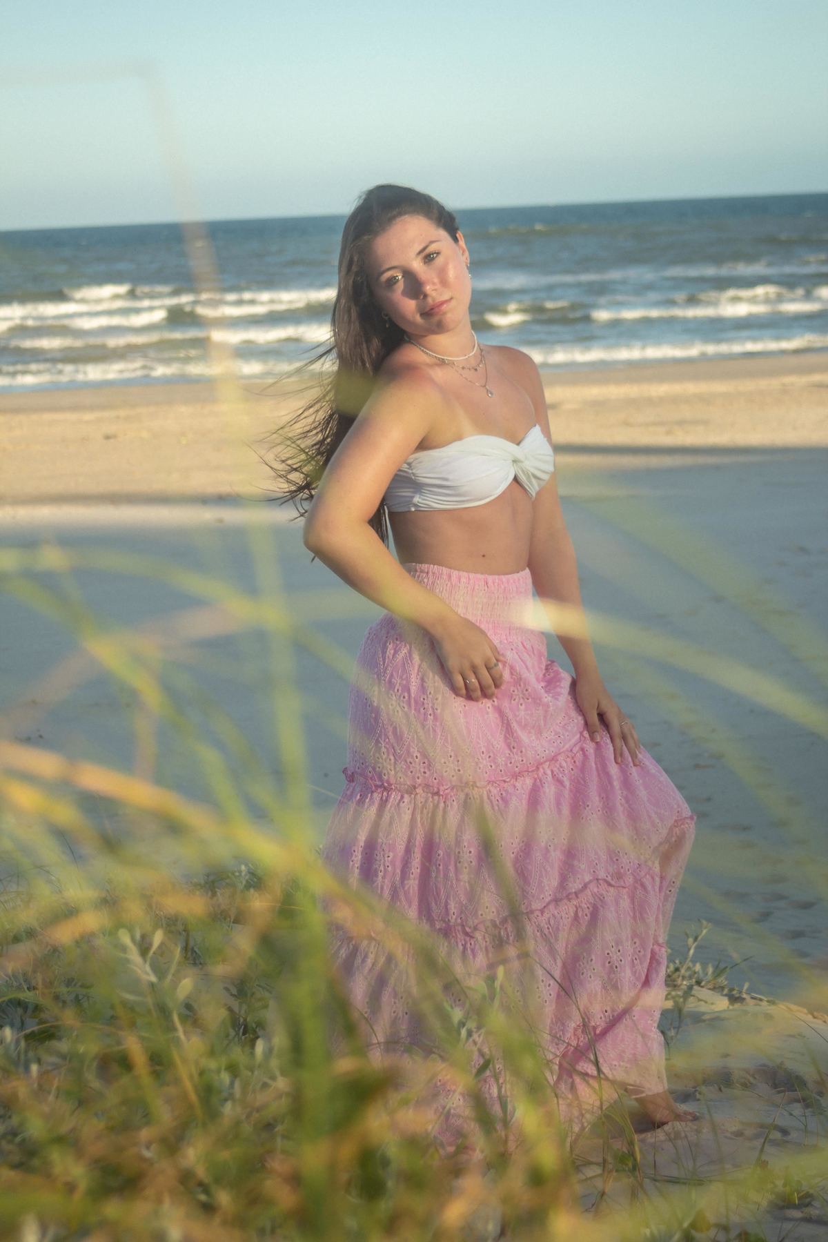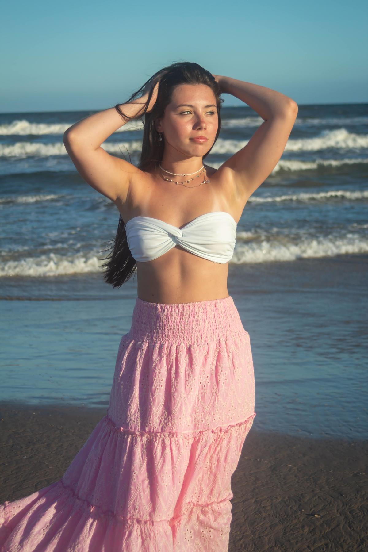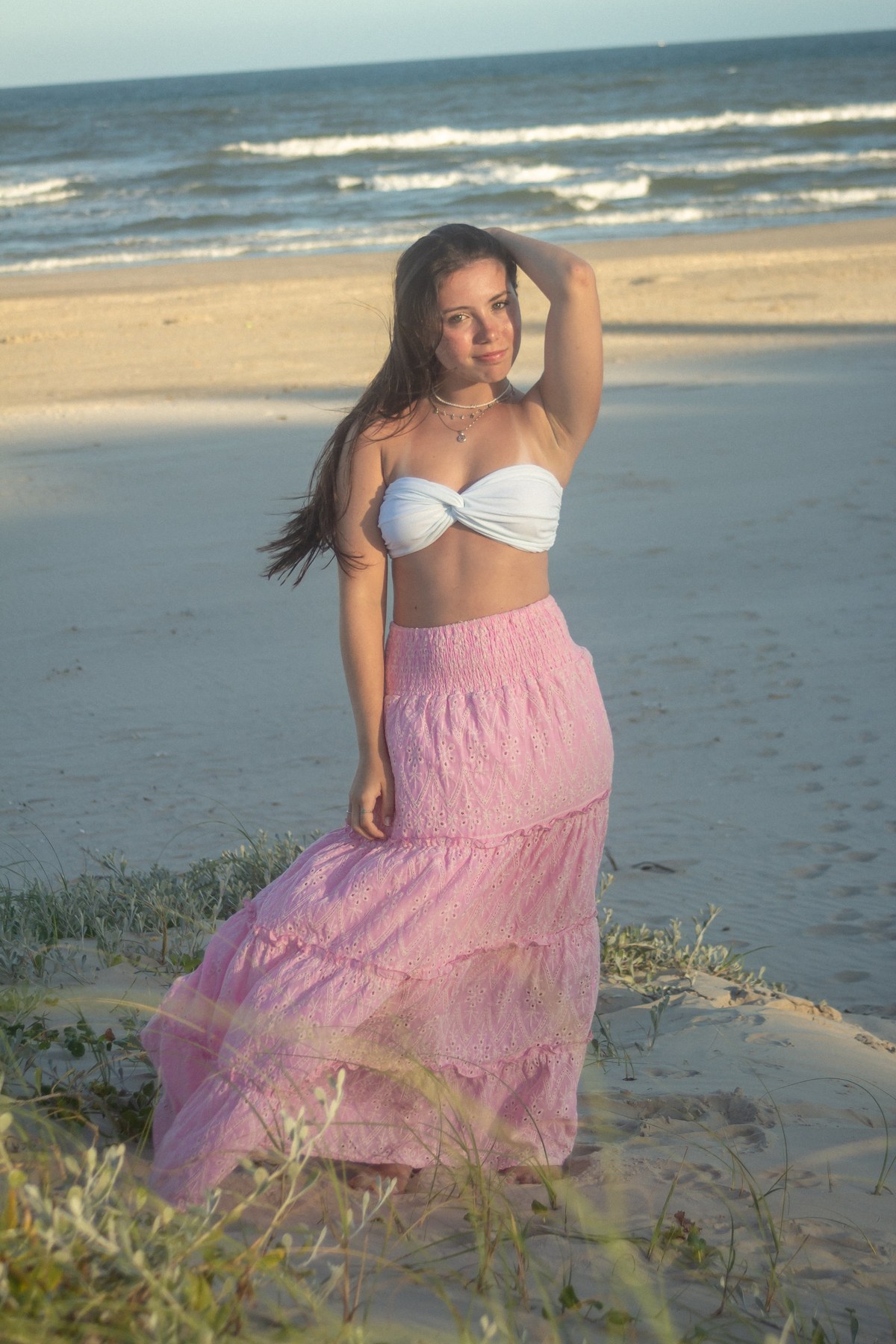 O ensaio da Rafaella na praia capturou sua essência em uma fase de leveza e reflexão. Ela queria que as fotos transmitissem o tom dourado do pôr do sol, simbolizando a paz e o equilíbrio que sente nesse momento da vida.